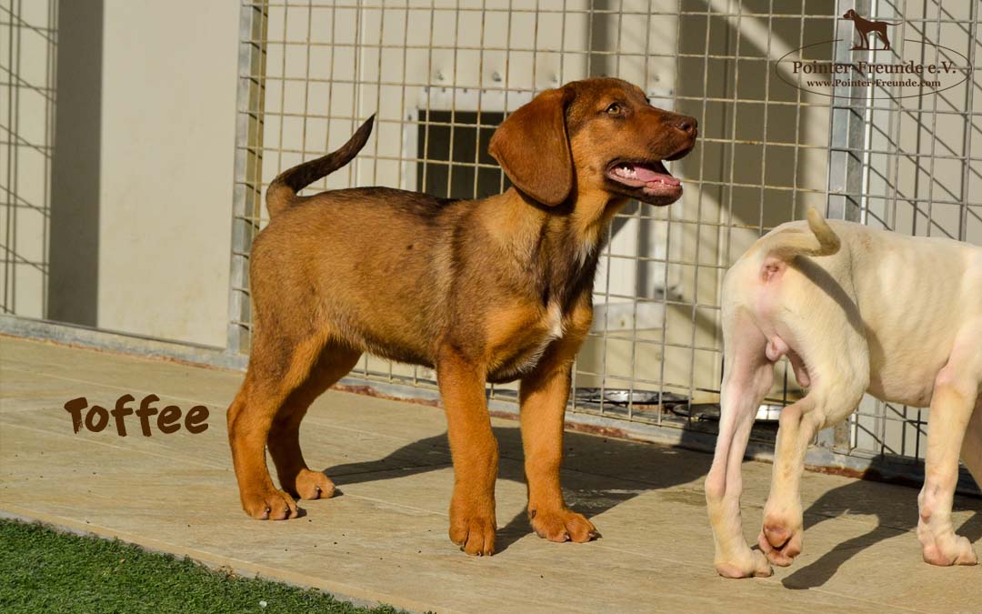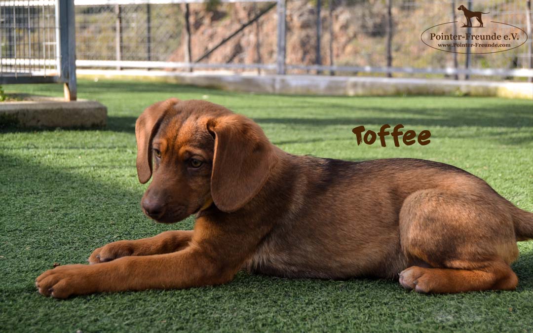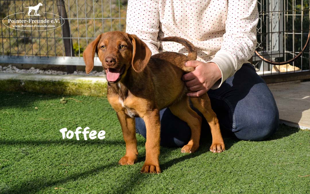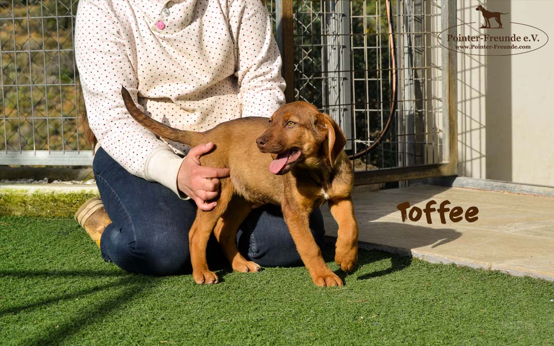 TOFFEE is a very relaxed, calm puppy. She likes to play with other dogs – but only from time to time. 🙂 She needs a lot of cuddles and loves to snuggle up with her humans.